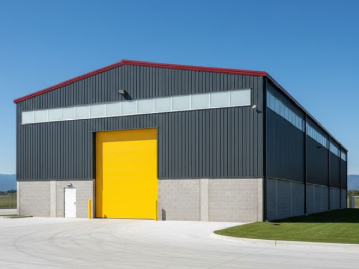 Galpón industrial de estructura metálica de acero, cubierta y cerramientos, montaje rápido y duradero.