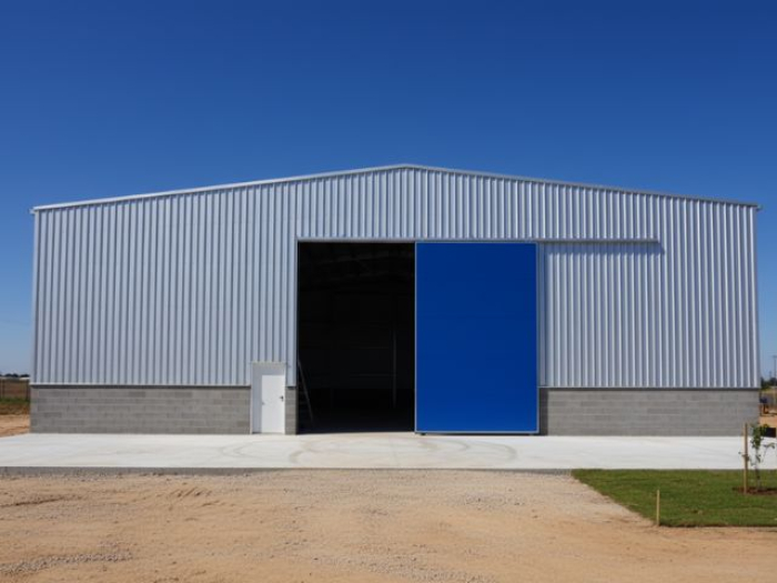 Galpón industrial con estructura metálica de acero , perfiles y cerramientos; montaje rápido y anclajes.